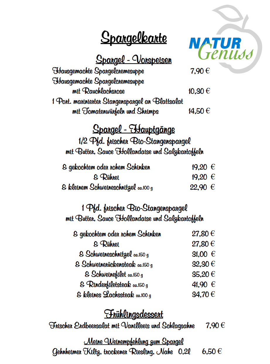 Unsere Angebotskarte präsentiert Ihnen zu verschiedenen Zeiten des Jahres